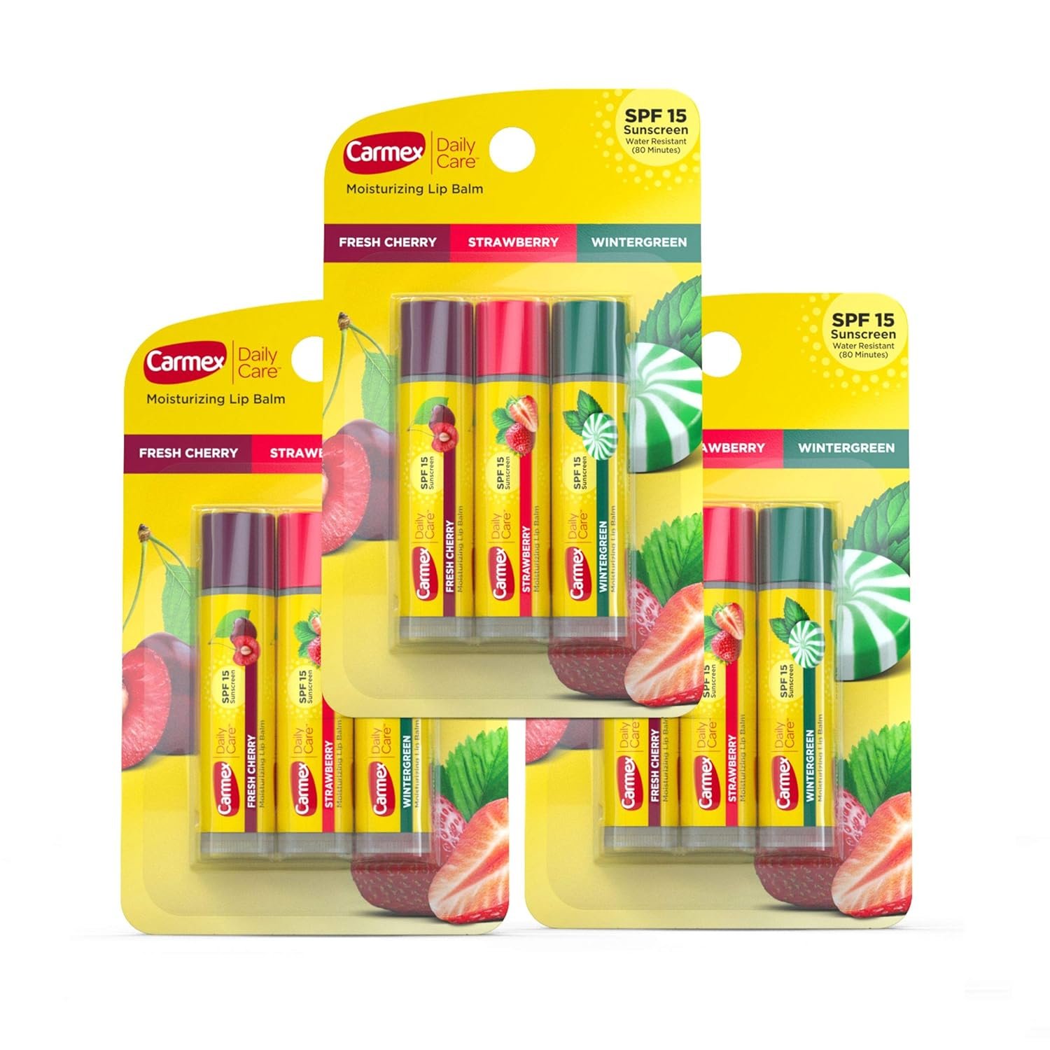 Carmex Daily Care Moisturizing Lip Balm Sticks, SPF 15, Multi-Flavor Lip Balm Pack, 9 Count (3 Pack)
