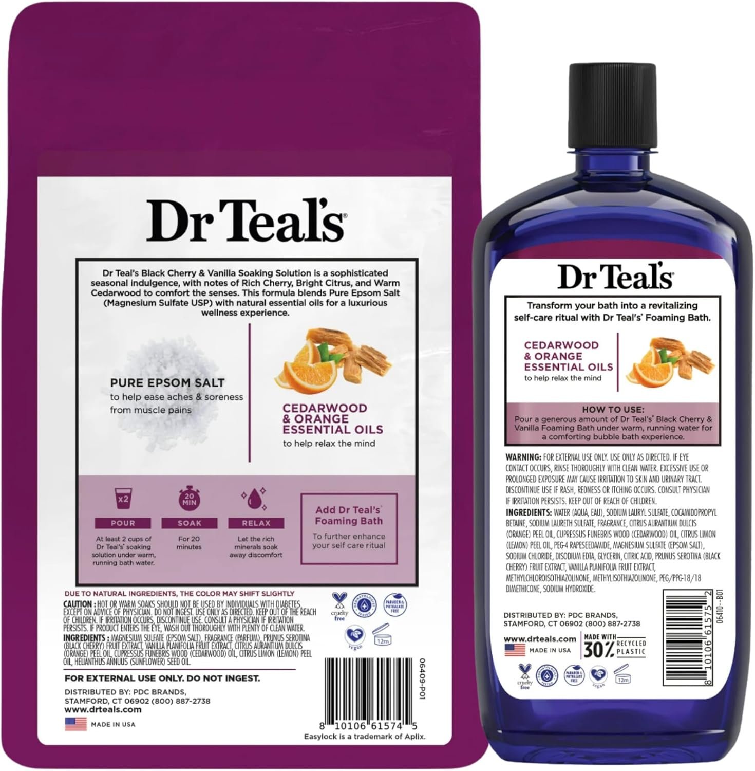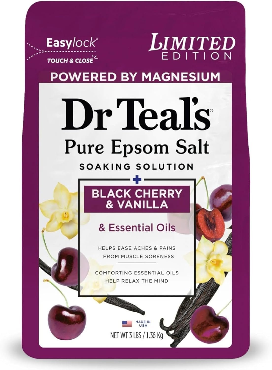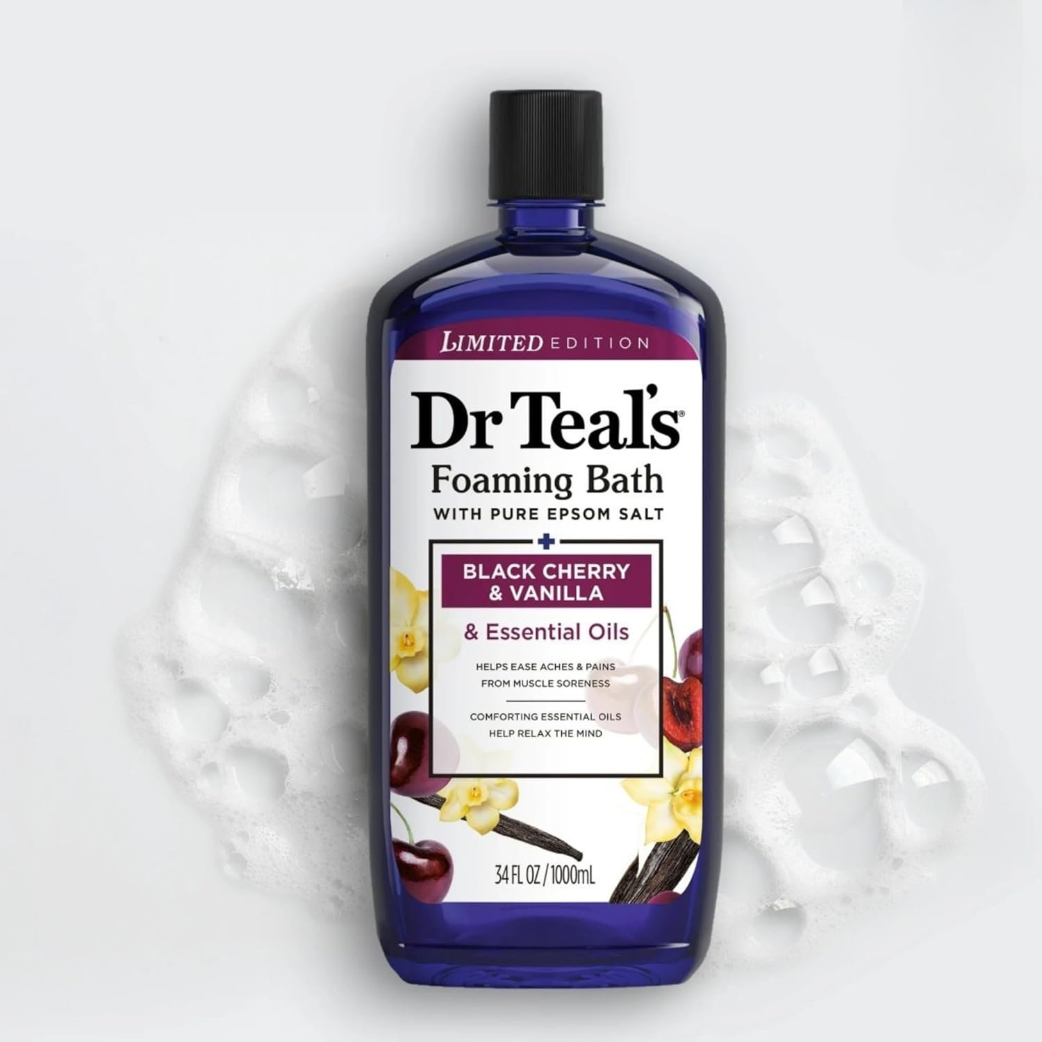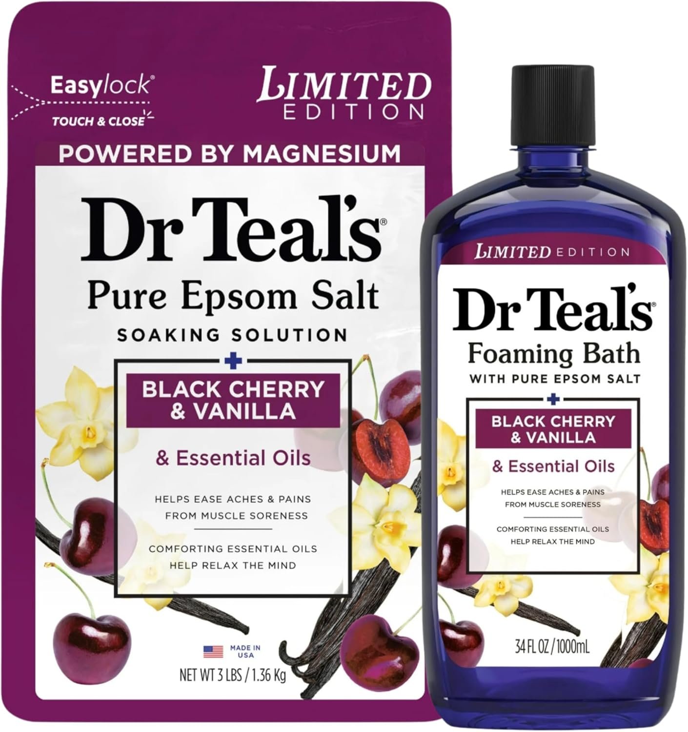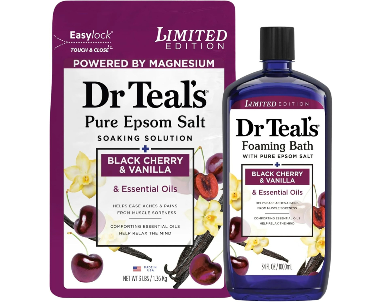 Dr Teal’s Limited Edition Black Cherry & Vanilla Bath Set, Pure Epsom Salt and Foaming Bath, 34 FL OZ