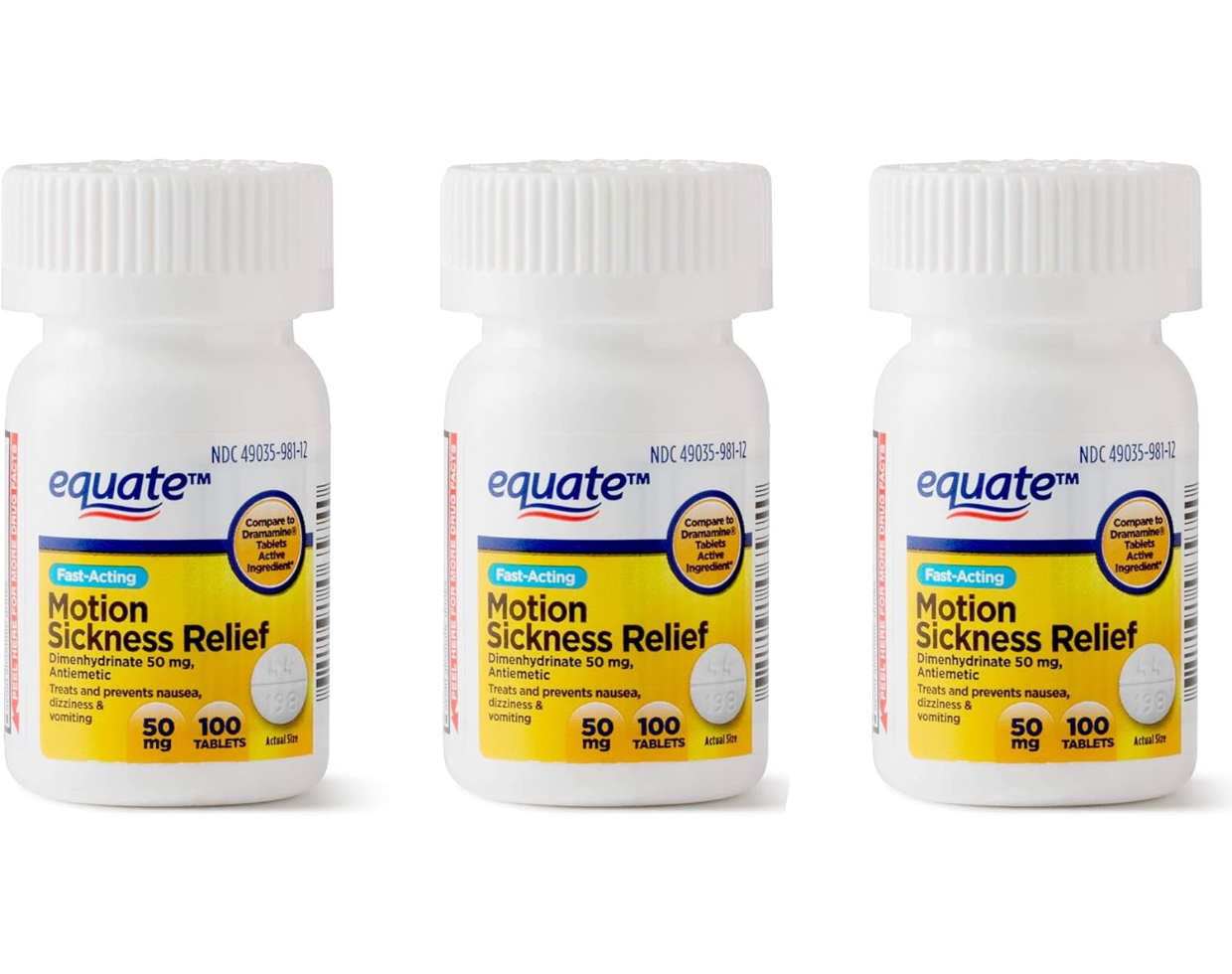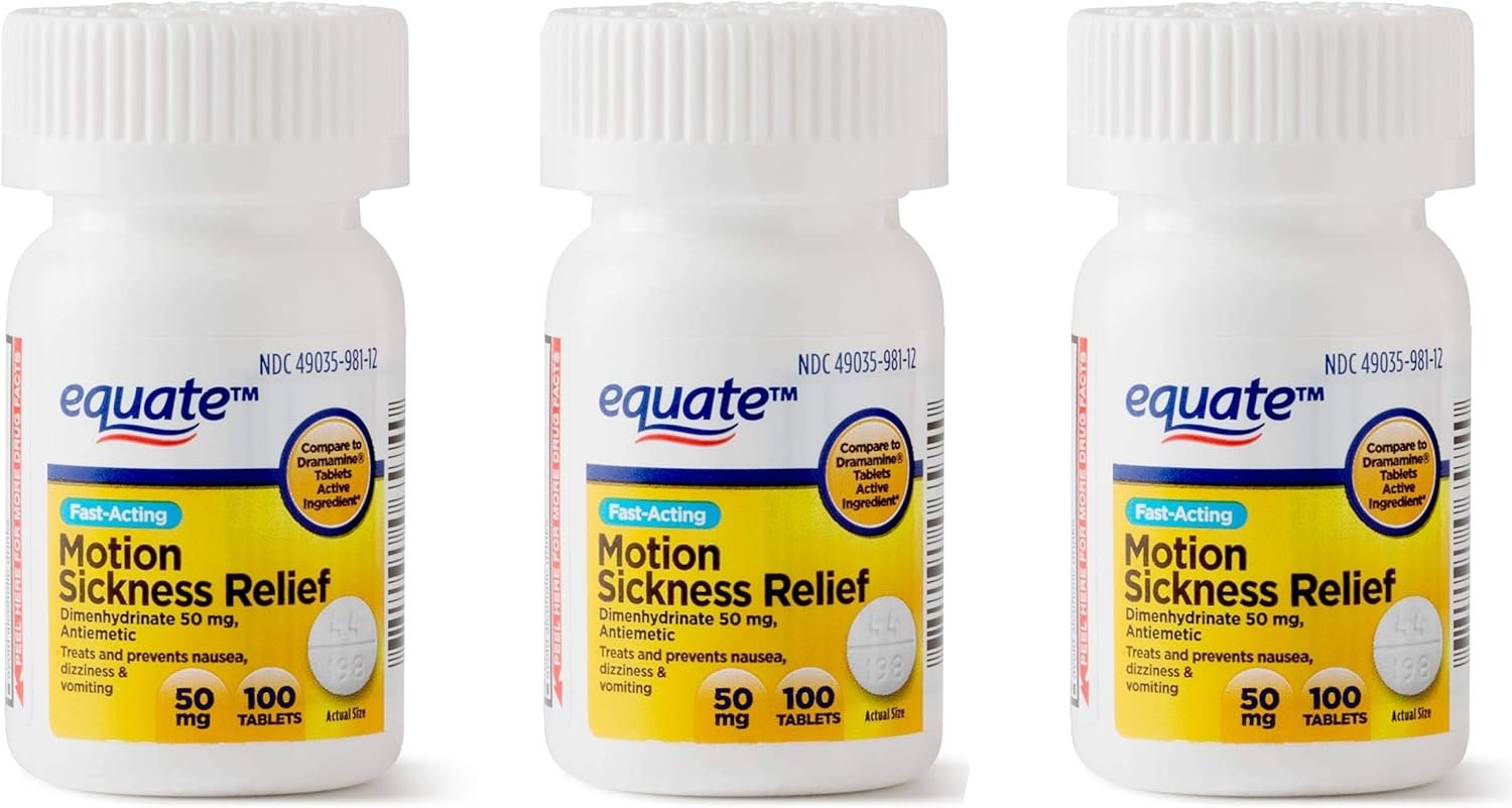 Equate Motion Sickness Dimenhydrinate 50 mg Generic Dramamine 100 Tablets (3 Pack)