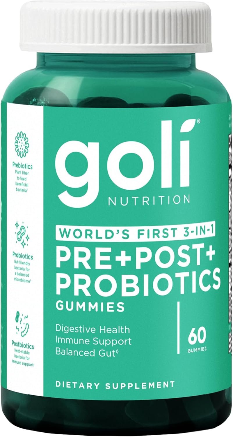 Goli Pre Pro Postbiotic Gummies – Worlds First 3-in-1 Formula with DE111 Probiotics, XOS Prebiotics, MCC1849 Postbiotics – Vegan, Non-GMO, Gluten-Free
