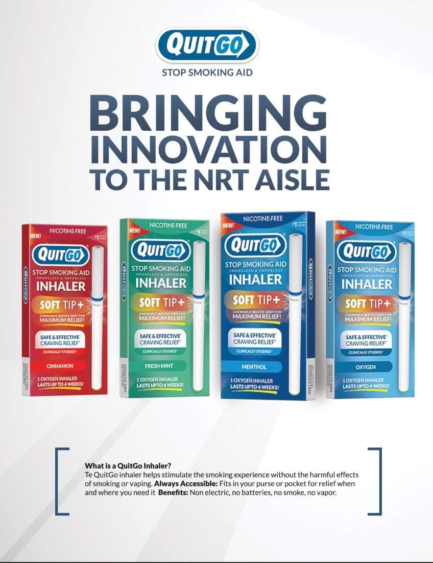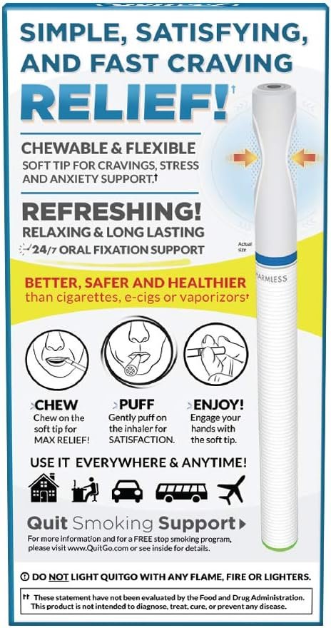 QuitGo Stop Smoking Aid, Smokeless Inhaler with Soft Tip Chewable Mouth Grip for Maximum Relief, Oral Fixation Support, Clinically Studied, Oxygen Inhaler Quit Smoking Aid (Oxygen Inhaler