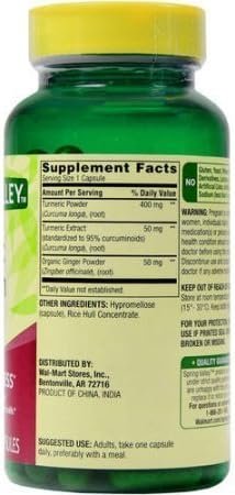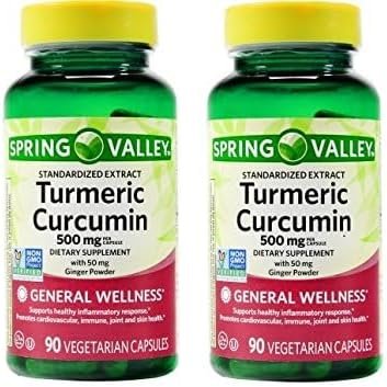 Spring Valley Turmeric Curcumin 500mg with 50mg Ginger Powder, 180 Vegetarian Capsules (2 Pack)