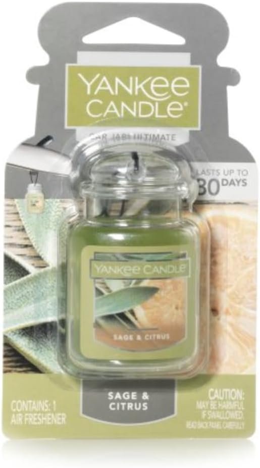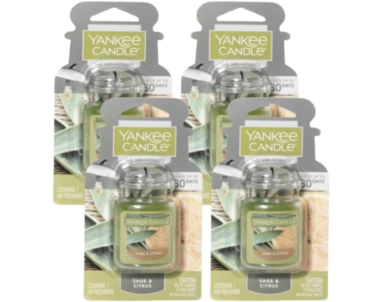 Yankee Candle Car Air Fresheners, Hanging Car Jar Ultimate, Neutralizes Odors Up To 30 Days, Sage & Citrus, 0.96 OZ (Pack of 4)